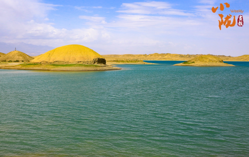 站在湖畔俯瞰,波光粼粼的湖面與頑強生長的植被、和那湖水中的山丘相映成趣。這山丘并非尋常之物,它們是歲月與風(fēng)霜共同雕琢而成的藝術(shù)品,它們猶如戈壁的眼睛,見證著千年的滄桑變遷,訴說著這片土地不為人知的故事。
