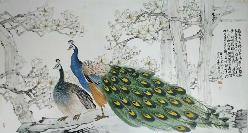2009年,一幅工筆《粉蝶戲牡丹》的成功售出,成為王自強(qiáng)藝術(shù)生涯的轉(zhuǎn)折點(diǎn)。這幅細(xì)膩靈動的作品不僅帶來經(jīng)濟(jì)收益,更讓他意識到傳統(tǒng)工筆畫的市場潛力。此后十年間,他創(chuàng)作的《孔雀牡丹》等工筆畫作屢獲佳績,八尺整張作品曾拍出2萬余元高價。但真正讓他在書法界嶄露頭角的,是對漢隸的深入探索。
