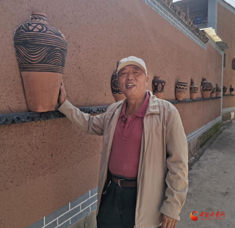 探訪完寺洼遺址后,記者一行又來(lái)到馬家窯村實(shí)地采訪。走進(jìn)馬家窯村,街道干凈整潔,花壇綠蔭中紅花奪目。尤其花壇內(nèi)間隔樹(shù)立的馬家窯陶器,和村內(nèi)道路兩旁墻上鑲嵌的造型各異的陶器,更讓整個(gè)村子彌漫出濃厚的歷史氛圍。