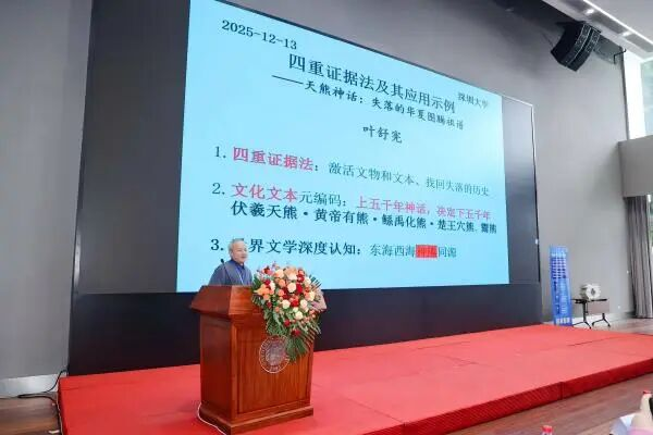 2025年12月13日,在深圳大學(xué)召開的第九屆中國學(xué)術(shù)評價(jià)論壇上,上海交通大學(xué)文科資深教授葉舒憲提出的“四重證據(jù)法”入選中國哲學(xué)社會(huì)科學(xué)10個(gè)原創(chuàng)研究方法(征求意見中)。“四重證據(jù)法”主要涉及歷史學(xué)、語言文學(xué)、社會(huì)學(xué)等學(xué)科,為人文學(xué)科提供了一套突破性的方法論體系,成功推動(dòng)了跨學(xué)科融合,為構(gòu)建中國自主知識體系提供了重要研究方法,充分體現(xiàn)了上海交通大學(xué)人文社科“立足傳統(tǒng)、面向未來”的學(xué)術(shù)追求,彰顯了上海交通大學(xué)新文科建設(shè)持續(xù)發(fā)力、人文學(xué)院文脈傳承和繁榮發(fā)展的卓越成效。