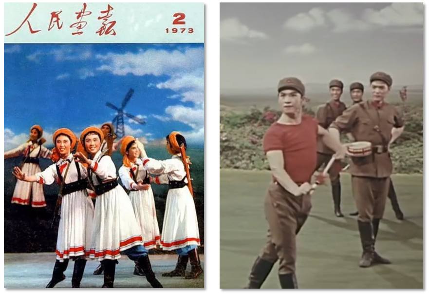 軍旅文藝作品在20世紀(jì)70年代迎來(lái)了創(chuàng)作高峰期,涌現(xiàn)了《草原女民兵》《戰(zhàn)馬嘶鳴》等一大批經(jīng)典作品,這與當(dāng)時(shí)特殊的歷史背景密切相關(guān)。“大約從70年代起,中國(guó)的舞蹈創(chuàng)作出現(xiàn)了一個(gè)稍稍活躍的狀態(tài)。為了歌頌新生活,也為了活躍舞臺(tái),一些編導(dǎo)被先期‘解凍’,可以有限度地回到工作崗位上來(lái)。”人民軍隊(duì)與人民群眾需要通過(guò)文藝作品這一宣傳媒介,加強(qiáng)軍民一家親的情感聯(lián)結(jié),以此維護(hù)社會(huì)穩(wěn)定、軍民團(tuán)結(jié)。