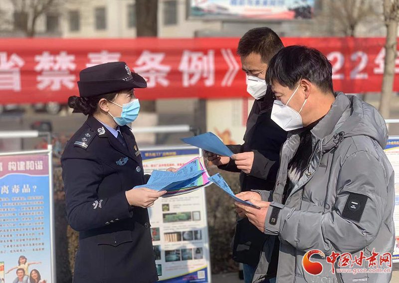 靈臺縣禁毒辦民警向轄區(qū)居民講解禁毒、防毒知識