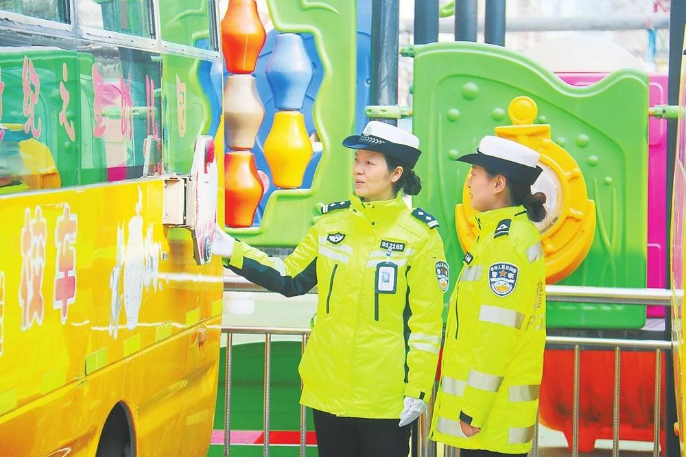 民警在檢查校車安全設施。2月19日,蘭州市公安局交警支隊七里河大隊民警走進七里河區(qū)世紀之星幼兒園,開展校車啟封安全檢查。 新甘肅·甘肅法治報記者王輝攝