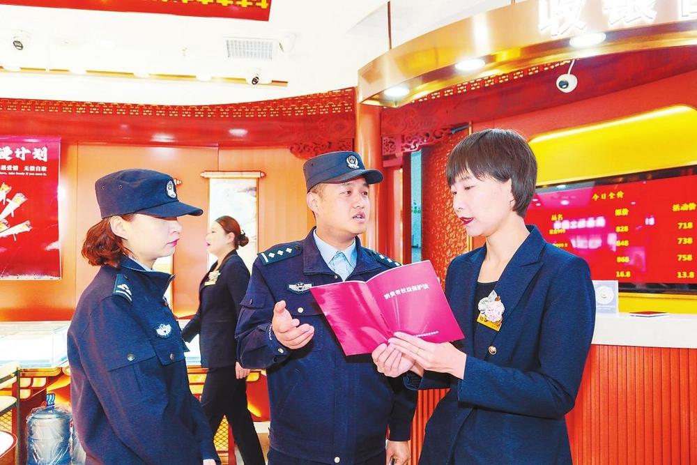 3月14日,蘭州市公安局七里河分局組織多個派出所民輔警走進商超、餐飲、副食品店等營業(yè)場所,開展“3·15”消費者權(quán)益日普法宣傳和專項檢查,倡導(dǎo)商家誠實守信合法經(jīng)營,為消費者營造安全、放心的消費環(huán)境。 新甘肅·甘肅法治報記者張瑞軍攝