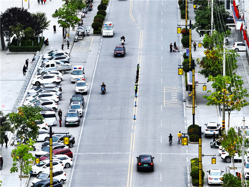 在熙攘的鹽井古街,巡邏民警的身影融入如織的游人;踏入寧靜的秦皇湖景區(qū),執(zhí)勤民警的腳步輕撫過每一條林間小徑;穿梭在節(jié)日的秦人廣場,閃爍的警燈與萬家燈火交相輝映——這升騰流動(dòng)的“煙火人間”背后,總有一抹“藏藍(lán)”在默默守護(hù)。