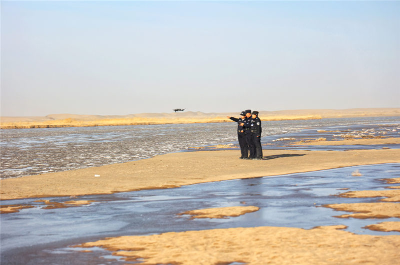 ▲金塔縣公安局城關(guān)派出所民輔警深入轄區(qū)生態(tài)保護(hù)區(qū)開展車巡、步巡、無人機(jī)巡,構(gòu)建起全域覆蓋、空地聯(lián)動(dòng)、精準(zhǔn)高效的生態(tài)安全防控體系,為織密生態(tài)保護(hù)網(wǎng)保駕護(hù)航。(葛萬譽(yù) 攝)