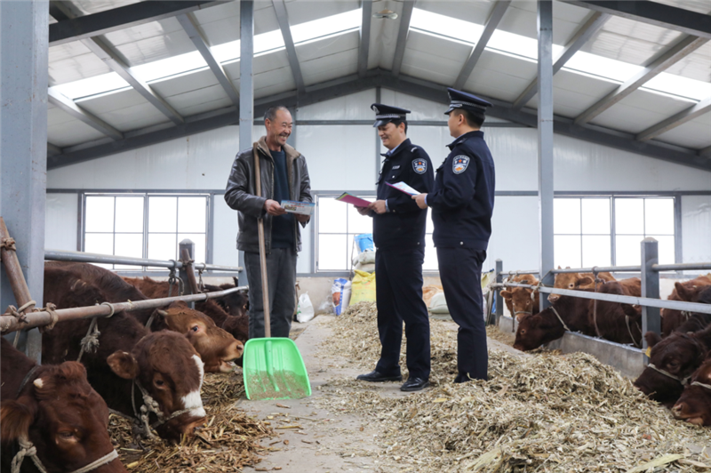 ▲平?jīng)鍪泄簿轴轻挤志终优沙鏊褫o警深入轄區(qū)紅牛養(yǎng)殖基地,開展針對性普法宣傳活動(dòng),進(jìn)一步筑牢轄區(qū)紅牛養(yǎng)殖產(chǎn)業(yè)法治防線,提升廣大養(yǎng)殖戶的法律意識。(張鏡鏡 攝)