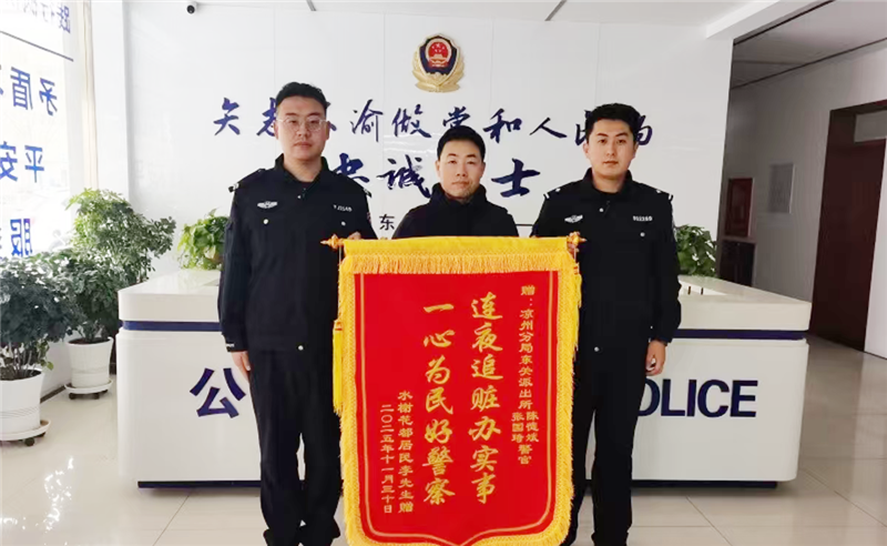拿到失而復得的手機,李先生激動不已:“真沒想到你們能連夜幫我找回來,你們太負責任了!”隨后,他也送來一面寫有“連夜追贓辦實事,一心為民好警察”的錦旗,向民輔警的盡心盡責表達感謝。