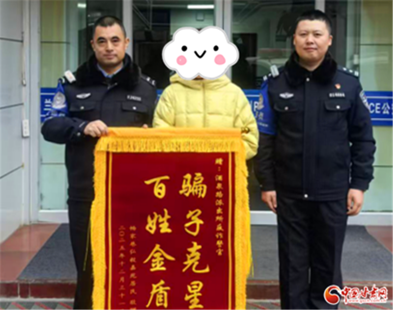 新年伊始,蘭州市公安局城關分局酒泉路派出所收到了一份特殊的“新年禮物”:轄區(qū)居民王女士將一面“騙子克星 百姓金盾”的錦旗,送到民警張繼勝、宋健偉手中,感謝民警在緊急時刻為其保住160萬元資金。