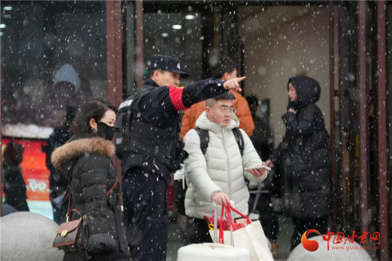 春運期間,天水普降大雪,天水南站派出所民警加強警力部署,在站前廣場開展為民服務(wù)