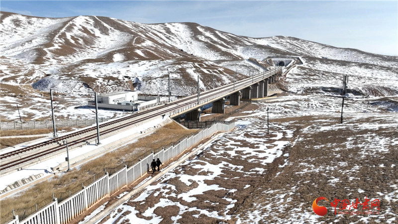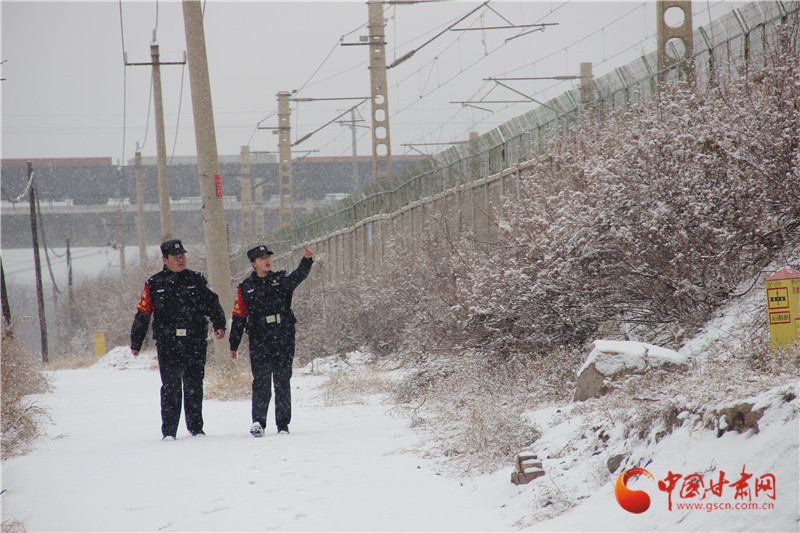 天祝西站派出所民警在護網(wǎng)旁前行,在人跡罕至的高原,他們用日復(fù)一日的堅守,守護著列車的飛馳與旅客的歸途