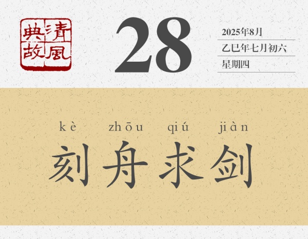 東西遺失了,沒有找回來,雖然很遺憾,但并沒有人覺得可笑。楚人劍掉到了江里,同樣沒有找到劍,但為什么我們不覺得遺憾,反而覺得可笑呢?那個人的劍掉到江里了,那個人的腦子是不是也掉到江里了呢?后人即以“刻舟求劍”為典,比喻墨守成規(guī),不知變通,處理事情的方法、解決問題的辦法不能隨著形勢的變化而變化,不能隨著事物的發(fā)展而發(fā)展。也用來形容事過境遷,追悔莫及。南宋高僧宗杲《頌古》其四十曰:“出門握手話分?jǐn)y,古路迢迢去莫追。卻笑波心遺劍者,區(qū)區(qū)空記刻舟時。”黃庭堅(jiān)詩《追憶余泊舟西江事次韻》:“老大無機(jī)如漢陰,白鳥不去相知深。往事刻舟求墜劍,懷人揮淚著亡簪。”其中的“空記刻舟時”“刻舟求墜劍”,都是對“刻舟求劍”的化用。