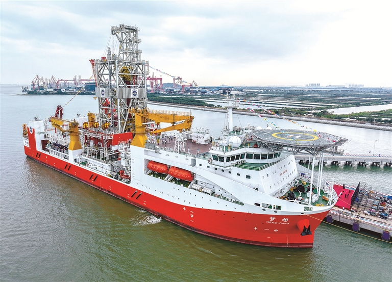“十四五”時(shí)期,我國持續(xù)加強(qiáng)關(guān)鍵核心技術(shù)攻關(guān)和成果應(yīng)用,加快高端裝備、先進(jìn)制造等領(lǐng)域關(guān)鍵技術(shù)攻關(guān),推動(dòng)傳統(tǒng)產(chǎn)業(yè)向高端化、智能化、綠色化轉(zhuǎn)型。圖為擁有最大11000米的鉆深能力、我國自主設(shè)計(jì)建造的首艘大洋鉆探船“夢(mèng)想”號(hào),該船于“十四五”時(shí)期正式入列(資料圖片)。新華社記者 劉大偉 攝