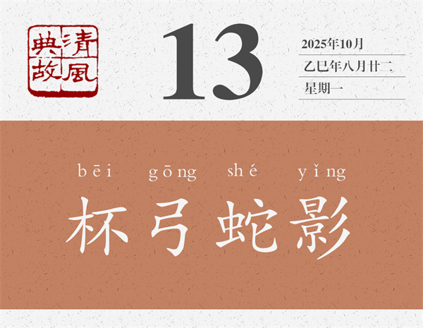 樂廣想,哪有這回事呢?當(dāng)時,河南聽事堂墻壁上掛著一張弓,上面用漆畫著一條蛇。樂廣就想,這位朋友所見杯中之蛇,是不是這張弓的影子呢?于是,復(fù)原了上次喝酒的現(xiàn)場,讓客人坐在原來的位置上,將酒杯放在原來的地方上,問他“酒中復(fù)有所見不”,客人說“所見如初”。樂廣這才告訴他,杯中之蛇只是角弓之影而已??腿擞谑?ldquo;豁然意解,沉疴頓愈”。后世即以“杯弓蛇影”為典,比喻疑神疑鬼,自相驚擾。明人袁宏道詩《病中和黃道元至日禪寺夢悉詩》:“消愁莫問弓蛇影,對境聊觀夢幻身。”