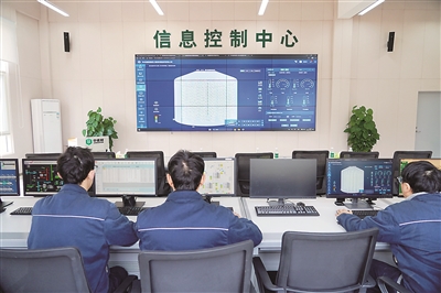 圖①:在中儲(chǔ)糧四川新津直屬庫(kù)信息控制中心,倉(cāng)儲(chǔ)保管員通過(guò)在線(xiàn)監(jiān)控系統(tǒng)查看倉(cāng)儲(chǔ)作業(yè)情況。