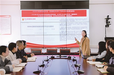 各級紀(jì)檢監(jiān)察機關(guān)抓實對黨內(nèi)法規(guī)制度的教育培訓(xùn),以學(xué)促干,不斷增強依規(guī)依紀(jì)依法履職能力和水平。圖為紀(jì)檢監(jiān)察干部在組織學(xué)習(xí)《黨政機關(guān)厲行節(jié)約反對浪費條例》。寧庭紀(jì) 攝