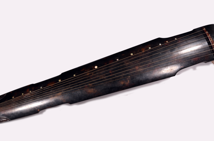 明代,通長(zhǎng)124.5厘米,琴額寬17.3厘米,琴肩寬21厘米,琴尾寬13厘米,形制為仲尼式,琴面為梧桐木,通體呈深栗色。護(hù)軫為卷角飾,弦軫為紅木制成。琴腹龍池上方鐫刻篆書詩(shī)一首“空山無人,鳴泉幽咽,歸從舒音,淖猨司鈴”,共16字,落款為“鄭世子”。池下沼上鐫刻方形篆書印章一方,為“鄭學(xué)圖書”??谈箍?ldquo;大明萬(wàn)歷十年歲次壬午二月吉旦,鄭世子載堉按太簇尺造”。朱載堉是明代杰出律學(xué)家、歷算家,首創(chuàng) “十二平均律”,在音樂、數(shù)學(xué)、天文等領(lǐng)域均有重大建樹。