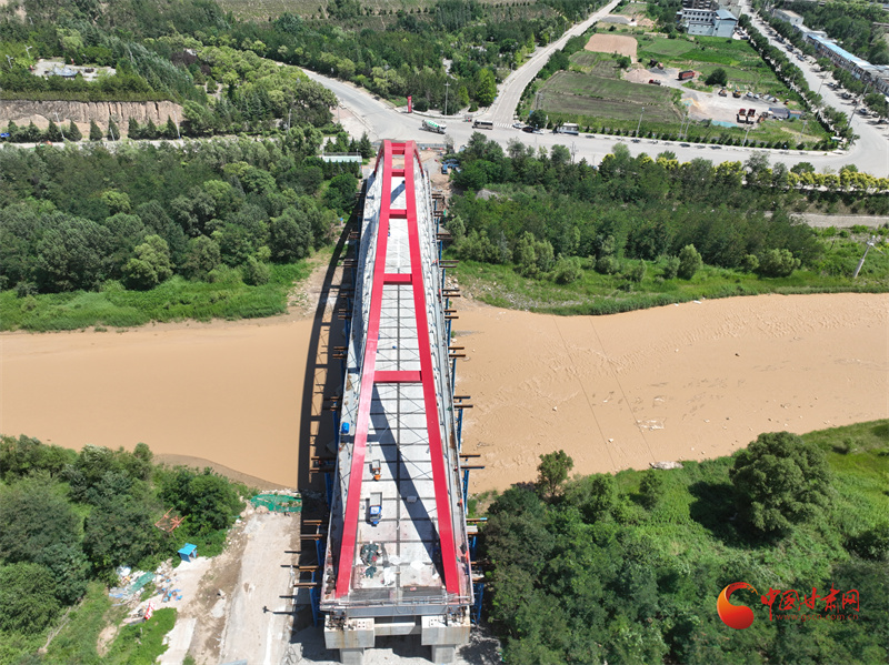 今年5月20日,長慶橋主體拱肋吊裝完成,大橋主體輪廓初現(xiàn),紅橋橫跨涇河,以極高辨識度被人們關(guān)注。