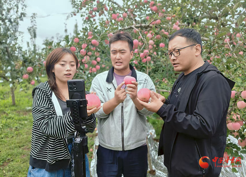 果園里,團(tuán)隊(duì)又開(kāi)始了新一輪直播,年輕主播手捧一顆嘎啦蘋果仔細(xì)講解,后臺(tái)訂單提示音此起彼伏。