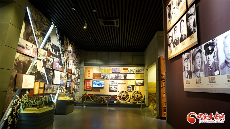 其中,巨幅半景畫配多媒體投影再現(xiàn)沈家?guī)X、營(yíng)盤嶺、竇家山激戰(zhàn)。下沉式電子沙盤動(dòng)態(tài)演示三軍合圍蘭州態(tài)勢(shì)。展柜陳列國(guó)家檔案局、中央檔案館調(diào)取的戰(zhàn)役電報(bào)、烈士證件、支前小車等原件290余件。