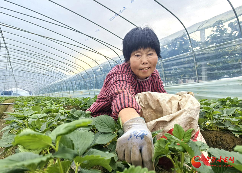 金秋時節(jié),隴南市成縣店村鎮(zhèn)新村的草莓種植基地里,工人俯身田間,正忙著為草莓苗除草、疏葉,一株株翠綠的草莓苗在溫暖的塑料大棚里茁壯成長,預示著來年又將是一個豐收季。這背后是店村鎮(zhèn)以“黨支部+合作社+農(nóng)戶”模式發(fā)展特色產(chǎn)業(yè),將“小草莓”打造成富民興村“大產(chǎn)業(yè)”的生動實踐。
