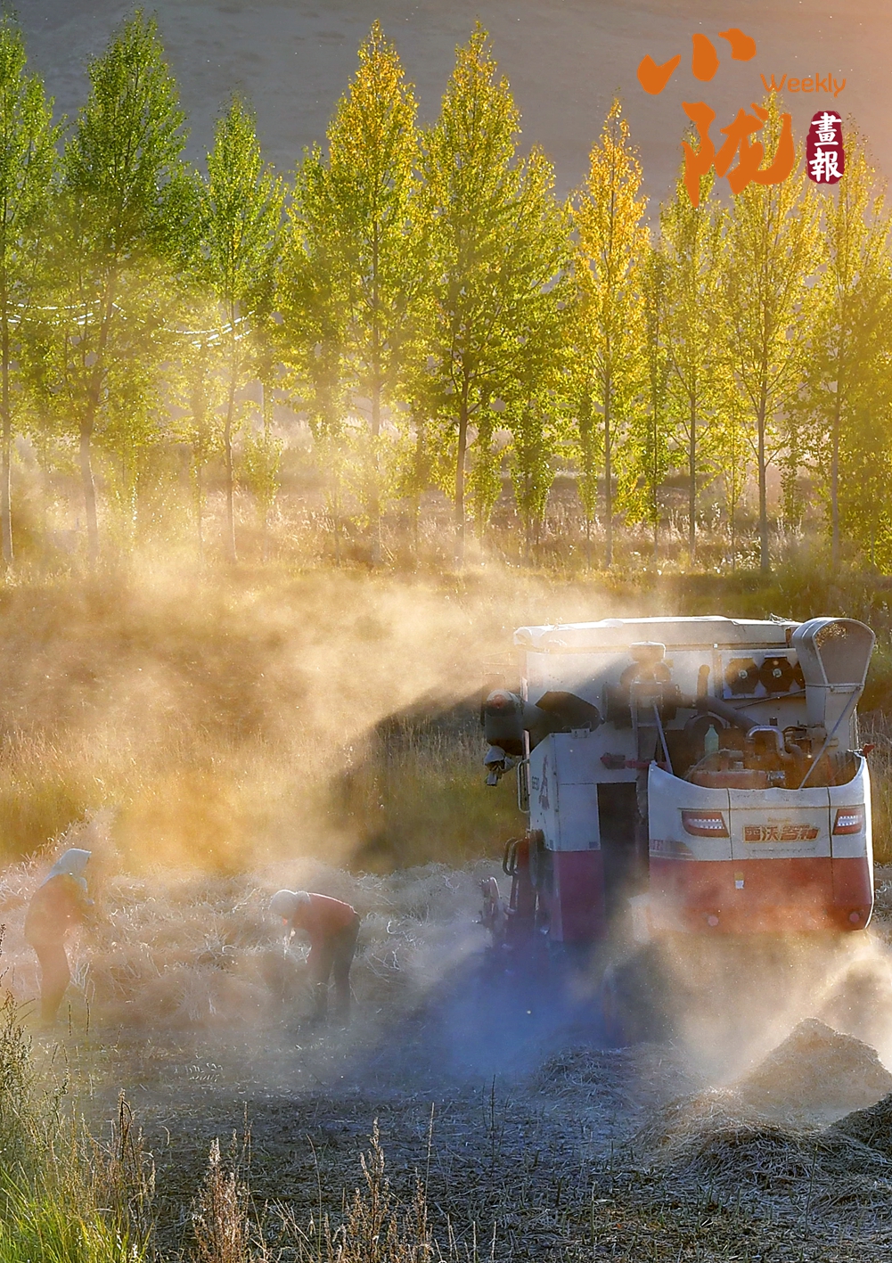 在秋風(fēng)的洗禮下,田野間一臺(tái)臺(tái)收割機(jī)來回作業(yè),機(jī)器的轟鳴聲、農(nóng)民們的歡笑聲回蕩在農(nóng)田上空。他們?cè)谶@片土地上播撒希望,耕耘夢(mèng)想,用那雙粗糙而有力的雙手,書寫著屬于他們自己的豐收篇章。