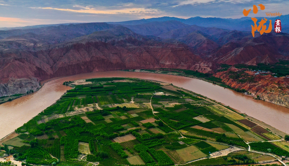 沿著黃河岸邊望去,大片綠色田園如翡翠般鑲嵌在廣袤曠野之中。阡陌縱橫間,莊稼隨風(fēng)搖曳,為蒼涼的河谷增添了一抹靈動(dòng)的柔情。遠(yuǎn)處的村落、搖曳的蘆葦、穿梭的飛鳥,與紅山碧水共同繪就了一幅層次豐富的山水畫卷。