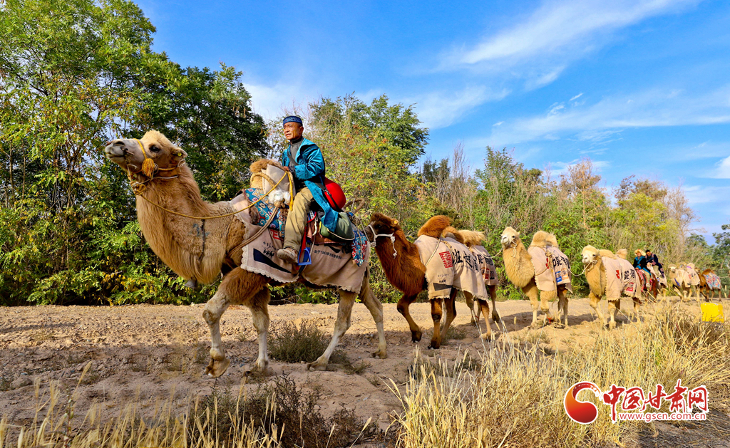 10月9日,一隊(duì)由33峰駱駝組成的駝隊(duì)行進(jìn)在高臺(tái)縣境內(nèi)的絲綢之路大型漢唐古文化遺址——駱駝城遺址內(nèi),千年駱駝城又響起陣陣駝鈴聲。