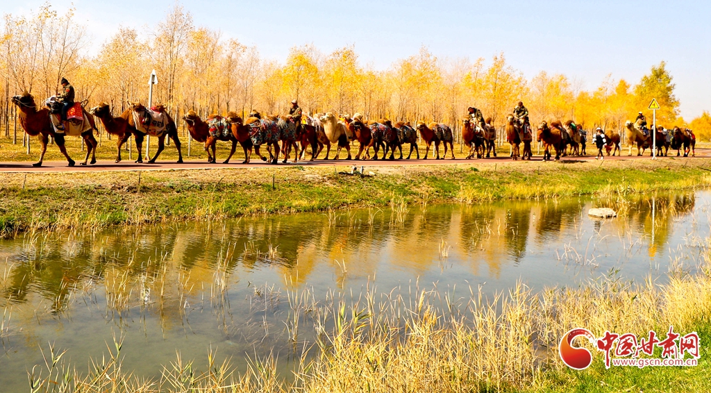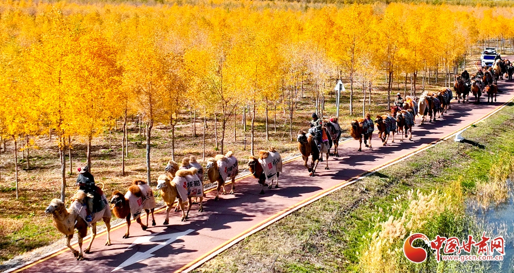 金秋十月,張掖市甘州區(qū)黑河林場(chǎng)萬(wàn)畝胡楊林迎來(lái)流金季節(jié)。10月15日,一支駝隊(duì)行進(jìn)其間,領(lǐng)略這最美的時(shí)光。這片昔日亂石林立、滿目瘡痍的黑河亂石灘,如今已成為6萬(wàn)畝的城市森林,游人、駝隊(duì)行進(jìn)其中,與金色林海共同構(gòu)成了一幅動(dòng)人的生態(tài)畫卷。