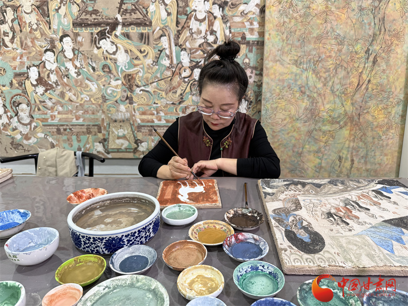 10月31日,由中央網(wǎng)信辦網(wǎng)絡(luò)傳播局、國(guó)家文物局政策法規(guī)司指導(dǎo),中國(guó)互聯(lián)網(wǎng)發(fā)展基金會(huì)特別支持,甘肅省委網(wǎng)信辦、省文物局主辦,張掖、嘉峪關(guān)、酒泉市委網(wǎng)信辦與敦煌研究院、中國(guó)甘肅網(wǎng)、鳳凰網(wǎng)甘肅頻道共同承辦的“何以中國(guó)|壁畫(huà)里的中國(guó)·當(dāng)AI遇見(jiàn)小飛天”網(wǎng)絡(luò)主題宣傳活動(dòng)采訪了敦煌石粉彩繪技藝的非遺傳承人王亞林。