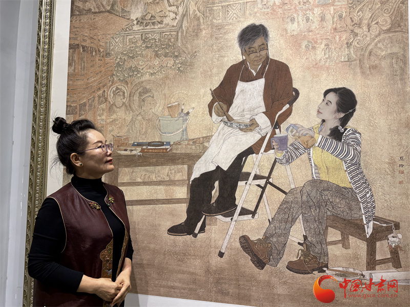 王亞林說(shuō),她這幅畫(huà)里的學(xué)生是按照自己來(lái)畫(huà)的,在敦煌壁畫(huà)的世界里,每個(gè)人都是虔誠(chéng)的學(xué)習(xí)者。