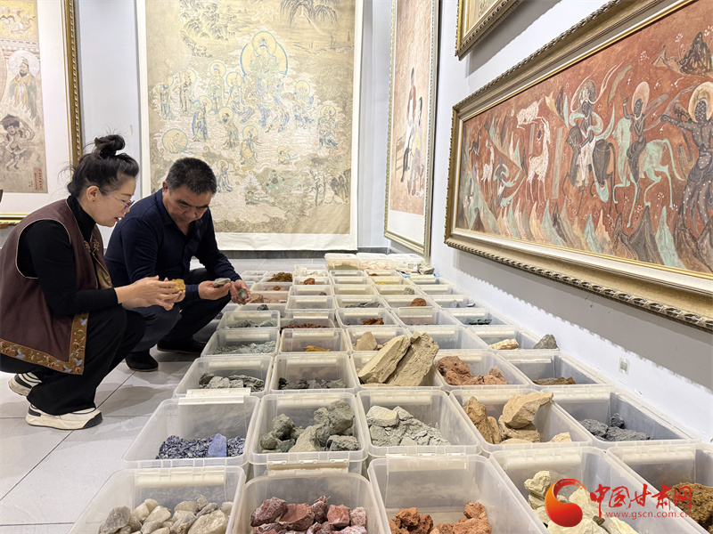 “也許缺少的那半塊,千年以前讓敦煌畫(huà)師撿走,經(jīng)過(guò)研磨用在繪制莫高窟壁畫(huà)中。”也是在一瞬間,王亞林感覺(jué)自己在和古人對(duì)話,對(duì)色彩的探索,為她打開(kāi)壁畫(huà)臨摹、保護(hù)、創(chuàng)作的大門(mén)。