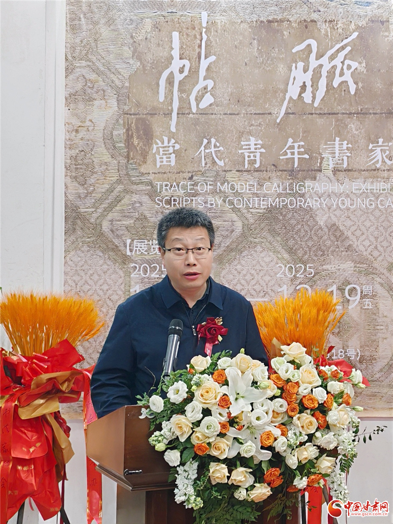 12月14日上午,“帖脈溯望——當(dāng)代青年書家行草作品展”在甘肅美術(shù)館開幕。中國書法家協(xié)會理事、甘肅省文聯(lián)黨組成員、副主席陳新長在開幕式致辭中表示,河北美術(shù)學(xué)院七位青年教師的作品展,以九零后的視角重新解讀二王法脈、唐草風(fēng)神與晚明意趣,作品既有晉唐筆法的精微細(xì)膩,又有當(dāng)代審美的開闊格局。