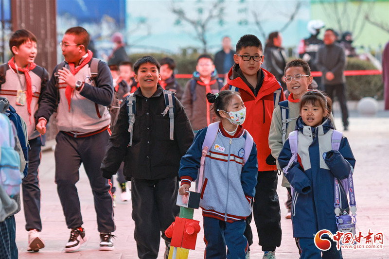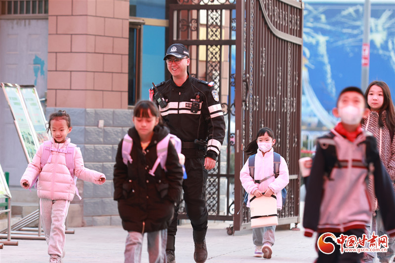 2月25日,蘭州市中小學開學,學生們走進校園,開始新學期學習生活,蘭州市公安局交管支隊城關大隊輔警在城關區(qū)水車園小學民勤街分校,為學生們講解交通安全知識。