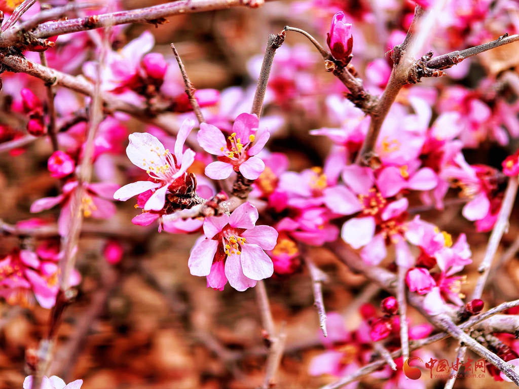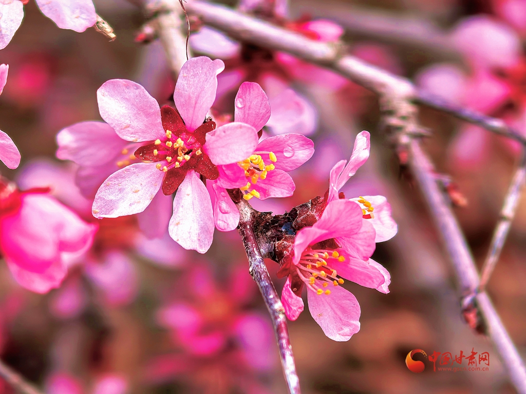 蒙古扁桃花開 祁連春意漸濃