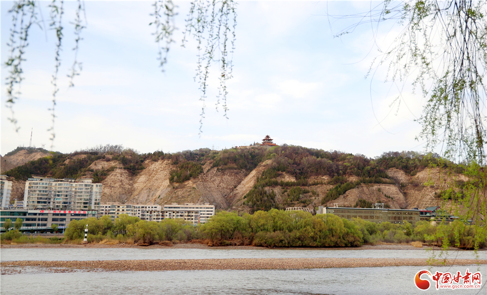 透過依依垂柳,遠眺黃河對岸,北塔山巍峨聳立,與河畔柳林相映成畫。黃河水滔滔東流,春日的金城山水相依、城景相融,盡顯西北春日的雄渾與秀美,成為市民踏青賞景的絕佳視角。