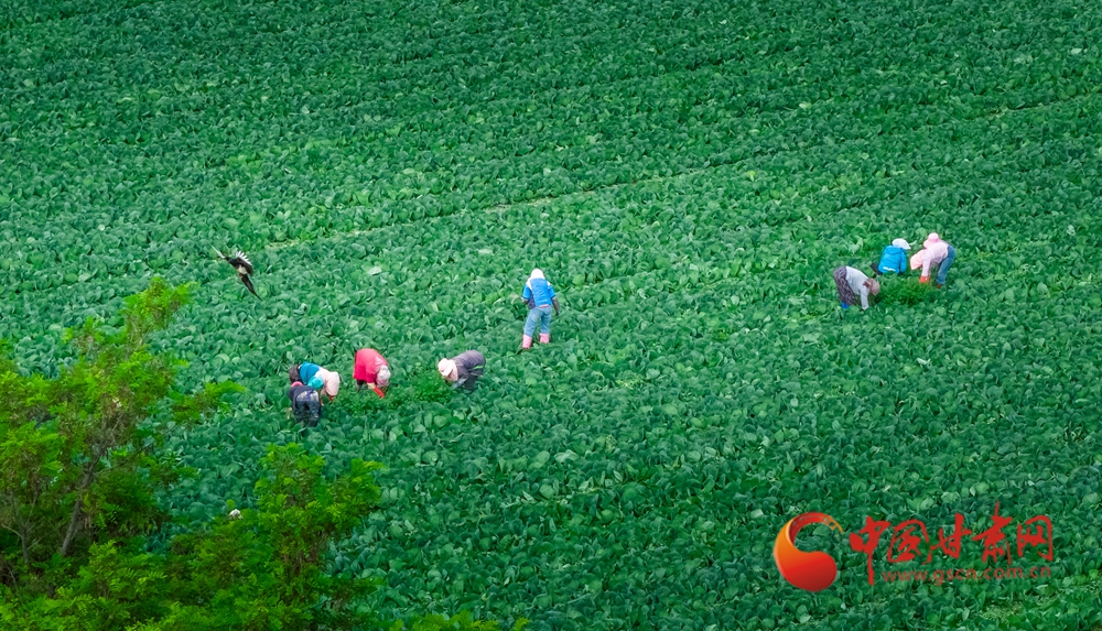 無垠的青翠鋪展成巨大的地毯,田間的農(nóng)人正揮汗耕作