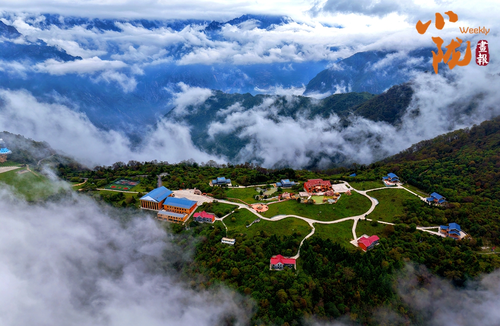 霧氣繚繞之間,山巒若隱若現(xiàn)。這座藏于山水之間的靈秀之地,在霧海的映襯下,如詩如畫,展現(xiàn)出一種超脫塵世的靜謐與神秘。