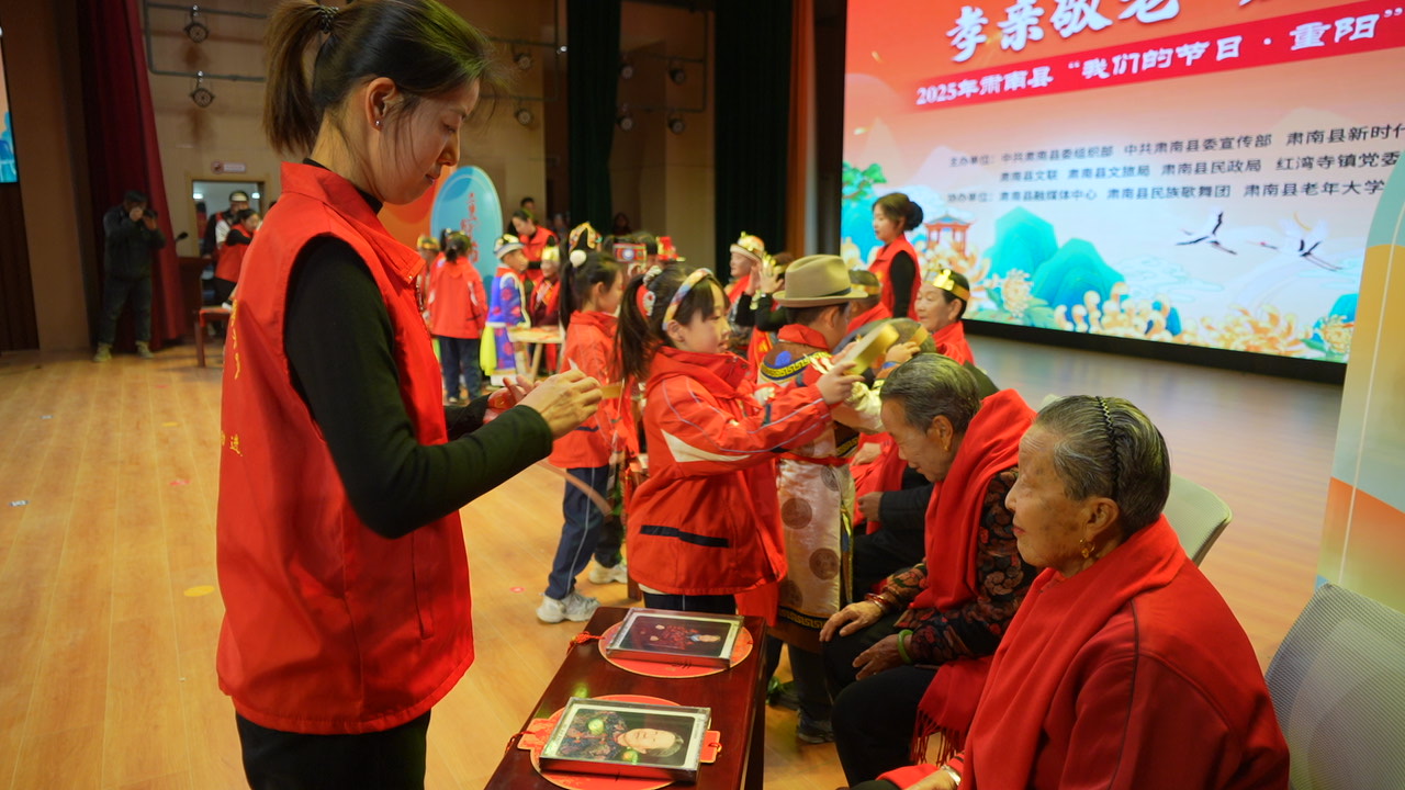 “祝您生日快樂(lè)!”隨著全場(chǎng)一起唱響生日歌,12位在9月至12月出生的老年壽星,在燭光里許下了心愿。紅灣小學(xué)的孩子們捧著親手畫(huà)的賀卡,一個(gè)個(gè)走到壽星面前送上祝福;志愿者和工作人員一起切開(kāi)生日蛋糕,把甜蜜的關(guān)懷送到每位老人手上。現(xiàn)場(chǎng)還開(kāi)展了 “我為鄉(xiāng)親拍張照” 作品交付活動(dòng)。據(jù)了解,縣文聯(lián)組織了20多位攝影家,走進(jìn)8個(gè)鄉(xiāng)鎮(zhèn),免費(fèi)為65歲以上老人拍照、制作照片,一共808幅,活動(dòng)現(xiàn)場(chǎng)由各鄉(xiāng)鎮(zhèn)工作人員帶回,用照片留住老人們的晚年美好瞬間。
