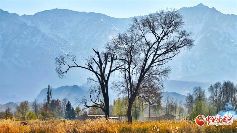 初冬時(shí)節(jié),張掖市民樂(lè)縣南古鎮(zhèn)柳谷村景色宜人。巍峨的祁連山脈連綿起伏,山腳下,萬(wàn)畝良田阡陌縱橫,黃綠相間的樹(shù)木點(diǎn)綴其間,為大地暈染出豐富的色彩層次,盡顯祁連山下冬日的獨(dú)特韻味。