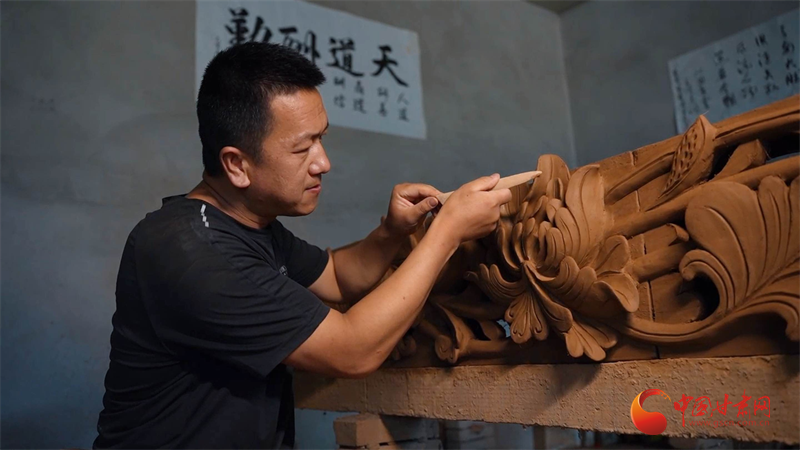 陽光透過灰瓦間隙,照亮作坊里的磚雕:龍游天際、鳳銜寶珠、麒麟踏云、吻獸吞脊——這些曾盤踞在故宮太和殿的祥獸,如今在西北山村的窯洞里,被邸家人的雙手復刻重生。