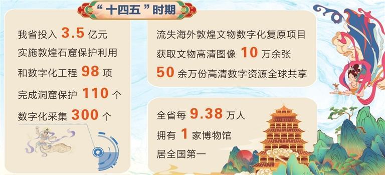 在文物保護(hù)提質(zhì)升級(jí)方面,我省投入3.5億元,實(shí)施敦煌石窟保護(hù)利用和數(shù)字化工程98項(xiàng),完成洞窟保護(hù)110個(gè)、數(shù)字化采集300個(gè),建成全球首個(gè)文物保護(hù)多場(chǎng)耦合實(shí)驗(yàn)室,制定國(guó)家和行業(yè)標(biāo)準(zhǔn)27項(xiàng),科研成果服務(wù)16省市及部分共建“一帶一路”國(guó)家;流失海外敦煌文物數(shù)字化復(fù)原項(xiàng)目獲取文物高清圖像10萬(wàn)余張,50余萬(wàn)份高清數(shù)字資源全球共享;第四次全國(guó)文物普查新發(fā)現(xiàn)線(xiàn)索4659條,投入24.26億元實(shí)施900余項(xiàng)重要文保項(xiàng)目;打造河西走廊國(guó)家遺產(chǎn)線(xiàn)路,創(chuàng)建嘉峪關(guān)長(zhǎng)城國(guó)家文物保護(hù)利用示范區(qū),全省文物系統(tǒng)性保護(hù)成效顯著,“中國(guó)特色?敦煌經(jīng)驗(yàn)”國(guó)際影響力持續(xù)提升。