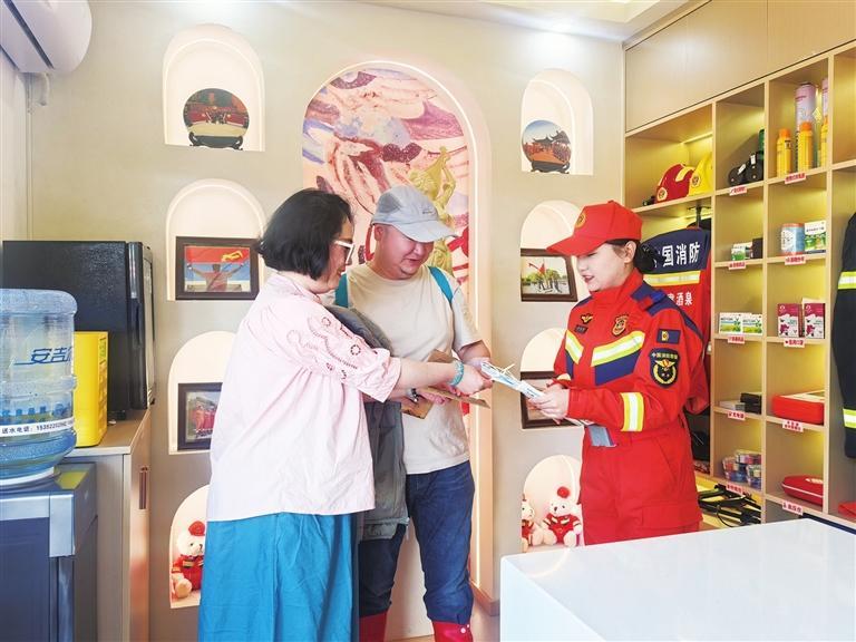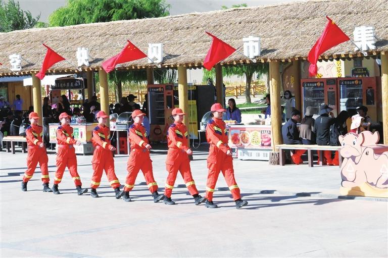 敦煌市消防救援大隊(duì)“九色鹿”女子服務(wù)隊(duì)在景區(qū)開展消防安全動(dòng)態(tài)巡查。
