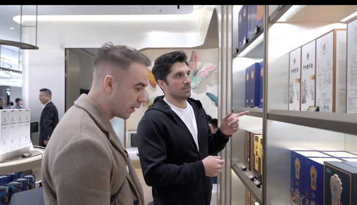 除了眾多國際知名品牌外,人氣潮玩周邊和福州特色文創(chuàng)產(chǎn)品柜臺人氣最高。來自中東的網(wǎng)紅達(dá)人Zein說,他看到了很多手工的非遺工藝品,如軟木畫、脫胎漆器,這些精巧的非遺技藝讓他震驚。