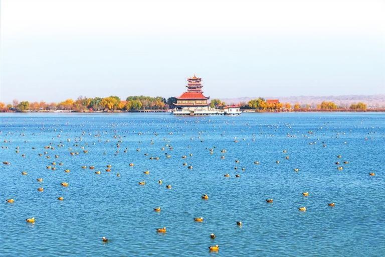 而在河西走廊東端的武威,天馬湖濕地則是城市中的“候鳥天堂”。天馬湖是人工修建的濕地,卻憑借著良好的生態(tài)環(huán)境,吸引了大量候鳥前來。冬季的天馬湖,岸邊的樹木掛滿了冰掛,晶瑩剔透,湖面的水域里,綠頭鴨、斑嘴鴨成群游動,偶爾還有白鷺在湖邊駐足,它們與城市中的建筑相映成趣,成為武威冬日里一道獨特的風景線。