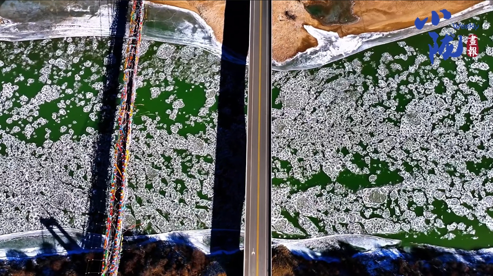 流動(dòng)的黃河化為靜止的冰帶,與沉睡的遠(yuǎn)山、沉寂的曠野共同組成一個(gè)浩瀚、純粹而充滿張力的寒原地理空間。