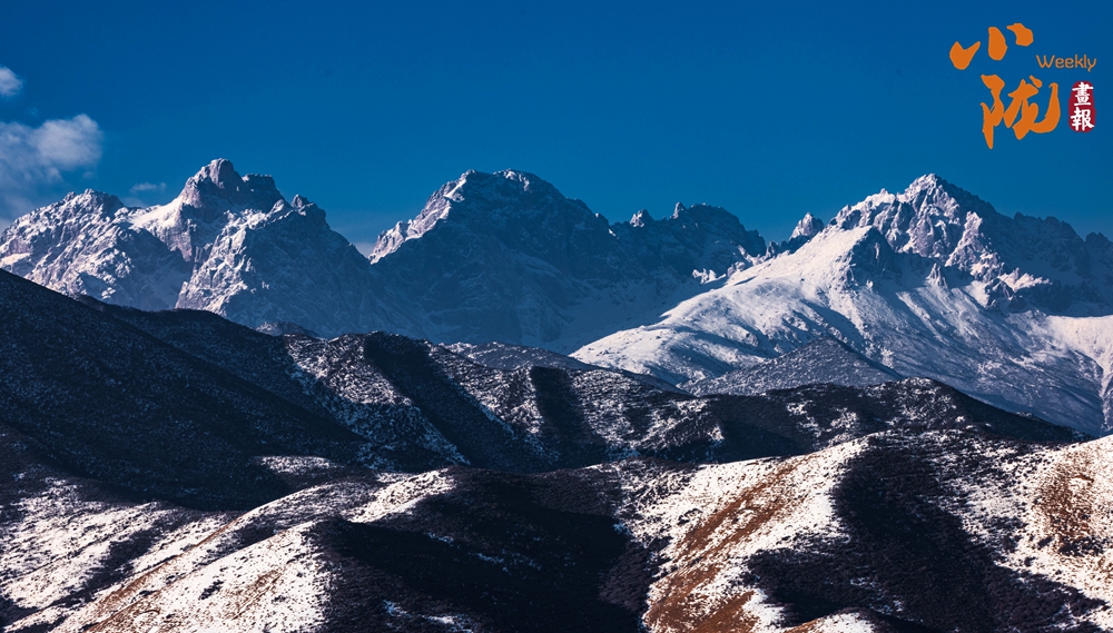 馬牙雪峰披著一身無(wú)瑕的純白,靜立于層疊起伏的山谷之間。高處是皚皚雪冠,低處是深谷幽影,這一高一低,一遠(yuǎn)一靜,在視覺與意境上形成了完美的平衡。