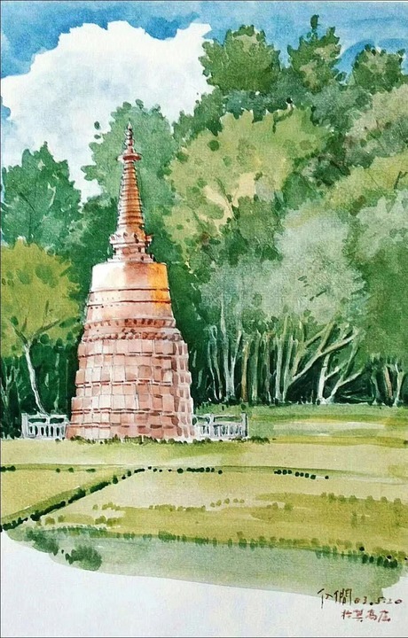 孫儒僴繪制的莫高窟一景。受訪者供圖