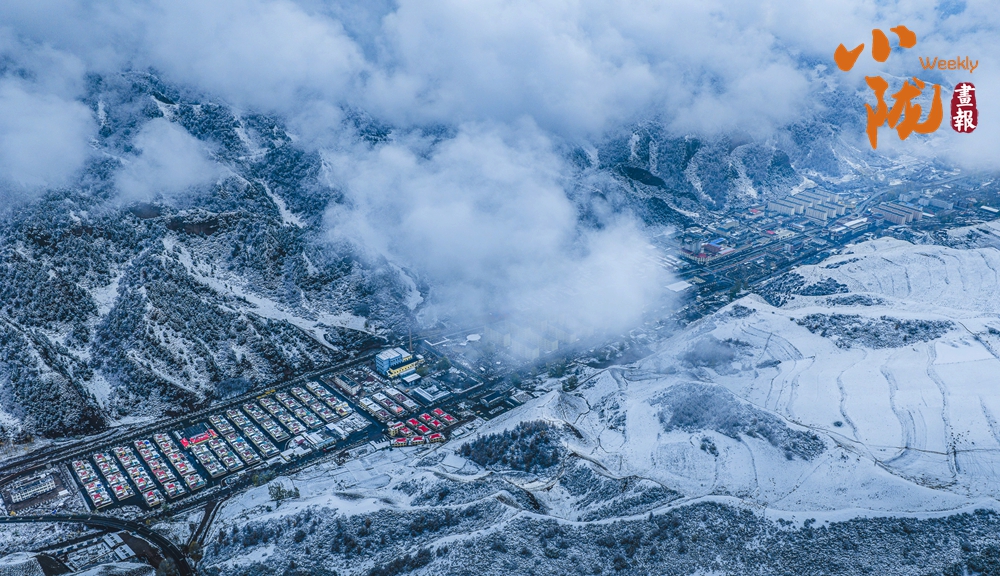從高空俯瞰,烏鞘嶺的山脊線在雪中若隱若現,一側云海翻騰,一側晴空萬里,形成鮮明的“一山分兩景”的奇觀。