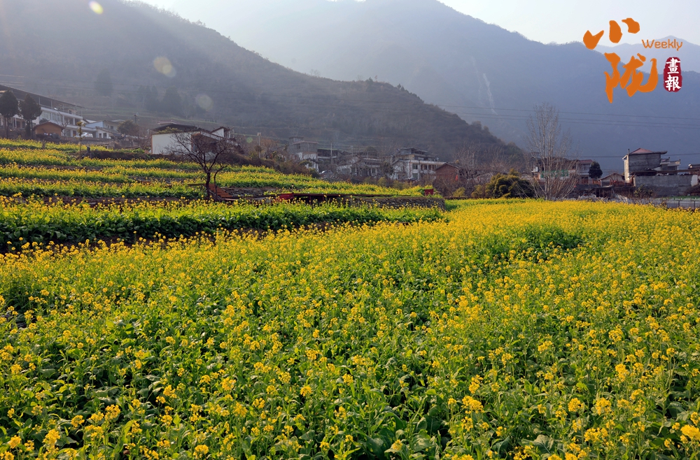 那一叢叢、一簇簇的油菜花,沿著梯田層層疊疊,從江邊一直蔓延到半山腰,鋪展在青山碧水之間;又像是大地剛剛蘇醒時,打翻的調(diào)色盤。